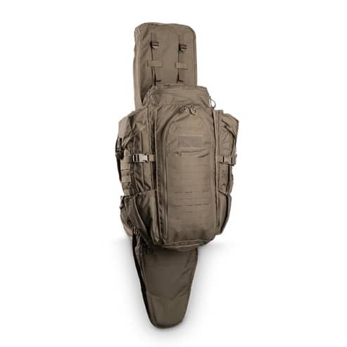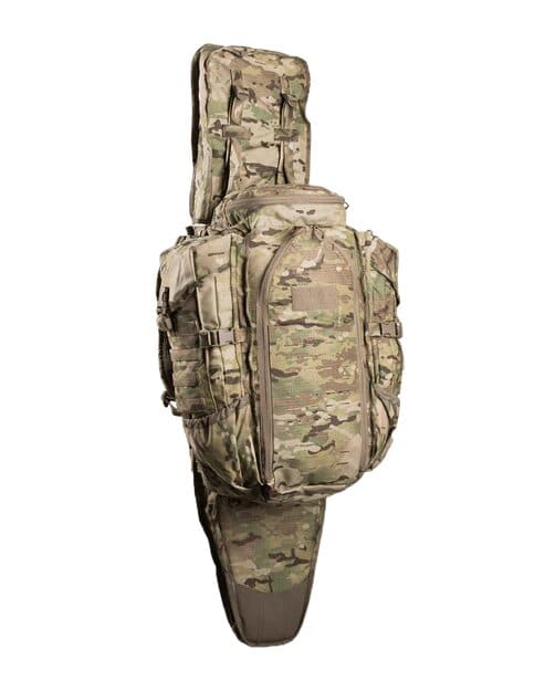 Designed as the quintessential sniper pack, the Phantom offers the ability to remove the bag and straps from the rifle scabbard, which can then be combined with the buttcover to make a drag bag with its dedicated drag loop. The Phantom is a front-loader with various sized pockets for organization and MOLLE inside and out for adding on any pouches you might need. A fold-down shelf can be used to divide the main compartment into upper and lower chambers.